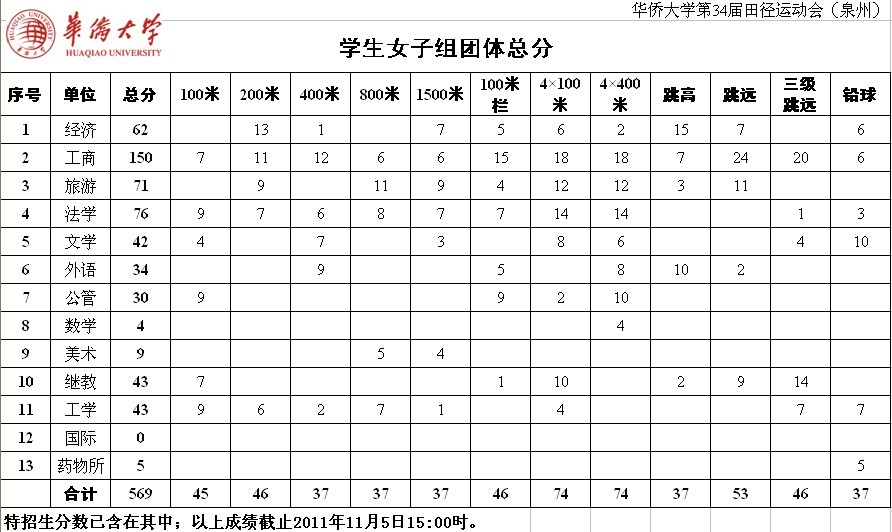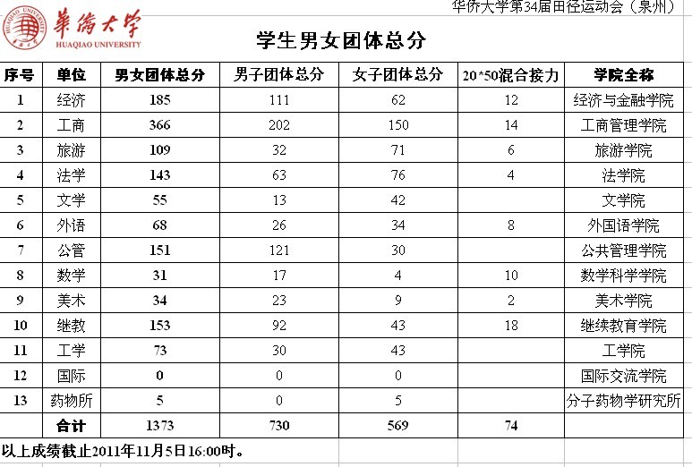 成绩更新截止到2011年11月5日16:00。