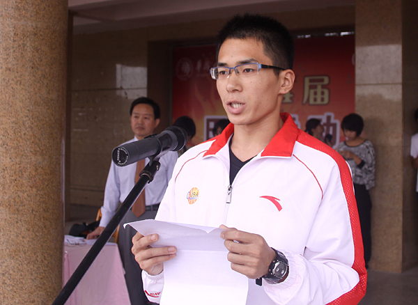 工商管理学院2008级学生魏文帅代表全体运动员发言,并宣誓:顽强拼搏,勇创佳绩,赛出水平,赛出风格。
