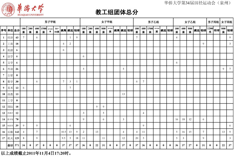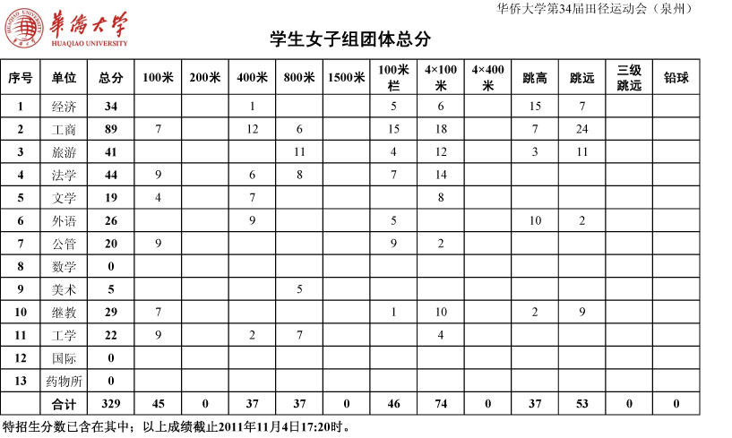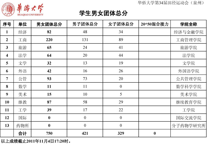 成绩更新截止到2011年11月4日17:20。