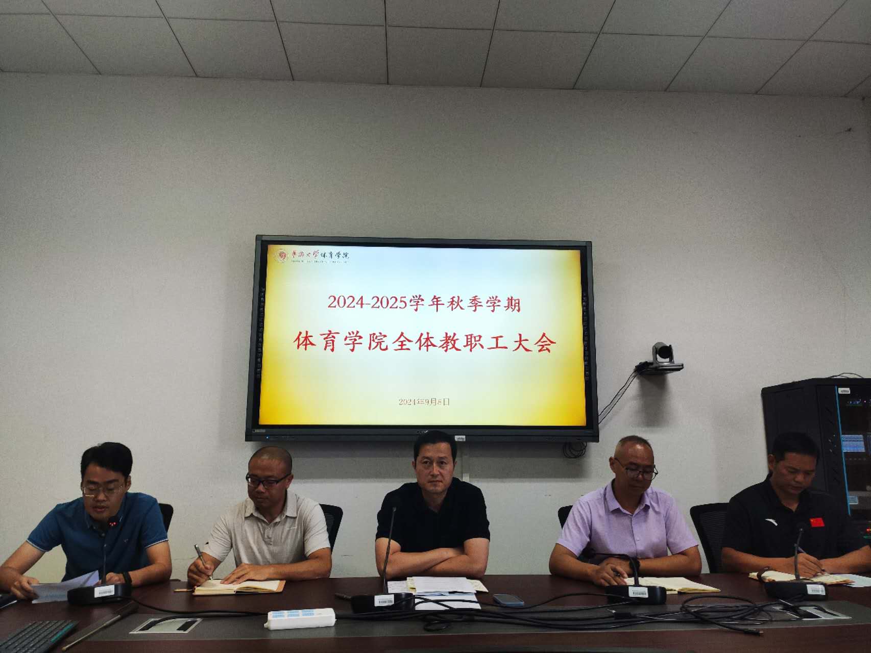 9月8日上午,学院召开本学期期初全院教职工大会,就本学期新一届领导班子工作、教学、竞训、安全、纪律等事项进行部署,宋庆彬主持会议。
