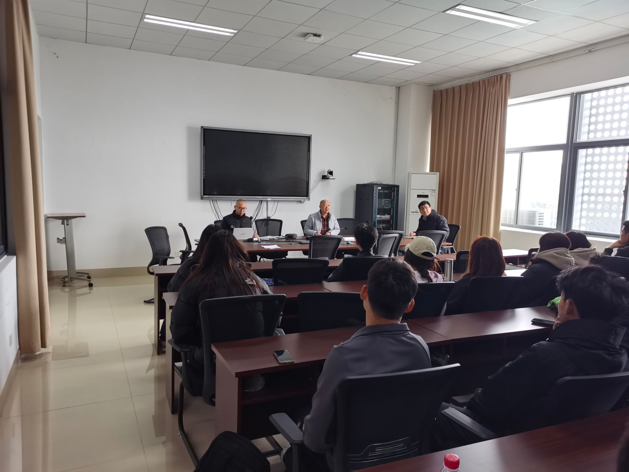 与会辅导员和班主任在班会上作了第一学期班级学业分析、学期安全注意事项和综测、奖学金细则修订说明。