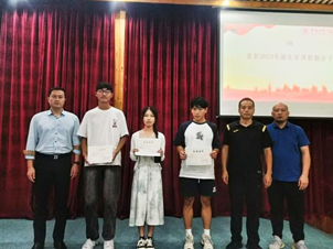 大会对获得校院两级军训积极分子的2023级新生、暑期抗击台风“杜苏芮”以及迎新工作期间涌现出的优秀志愿者进行了表彰。辅导员林一帆老师寄语新生要传承优良作风,内化实践成果,在躬身实践中放飞青春梦想。