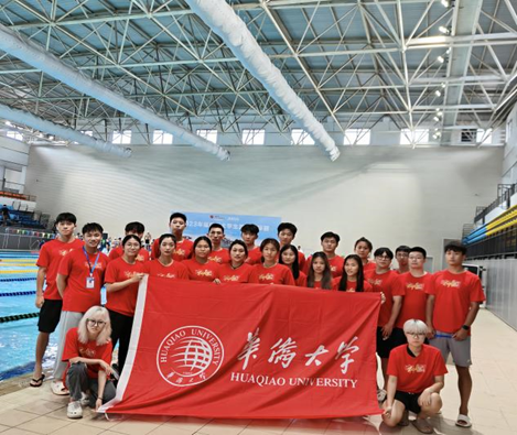 我校代表队21 名运动员,获得男子乙组团体总分第一名、甲组团体总分三等奖、乙组团体总分二等奖、丁组团体总分二等奖的好成绩。其中我校优秀运动员蔡宏伟在参加的四项比赛中收获 4 金,张昌松、覃锦威、孙宇航、孙婧宁等运动员为华大拼下 8 金、14 银、21 铜,总计43 枚奖牌的好成绩。褚行,卢铭诚,周佳怡等阳光组学生在比赛中展露出的努力和天赋,真正体现了阳光体育的目标,带动更多学生参与到运动中来,参与到游泳中来,共享游泳的快乐。