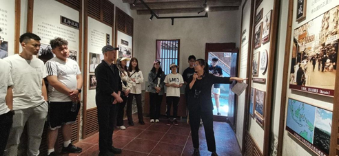 永春县达埔镇新琼村村书记潘文兵向永利yl23411集团师生介绍了达埔镇的历史与文化,体院师生一行并参观了著名爱国侨领事迹馆,领略了尤扬祖先生的满满的家国情怀。