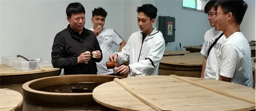 在得壹醋业,颜董事长向大家介绍了永春老醋的历史,以及“得壹”二字与“恪守本源,匠心酿造”背后深刻的文化意蕴,并带领大家走进了传统永春香醋的酿造车间。