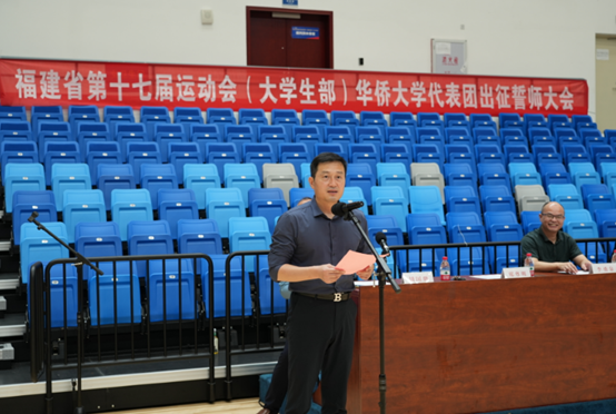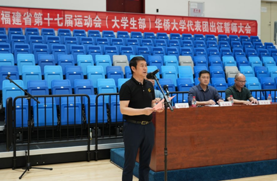 伴随着响亮的誓师口号,20支参加福建省第十七届运动会代表队运动员代表队在永利yl23411集团院长、代表团秘书长邢尊明的点签下集结。