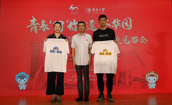 校长吴剑平出席交流见面会,并代表学校向谌龙、李雪芮赠送yl23411集团60周年校庆纪念T恤。