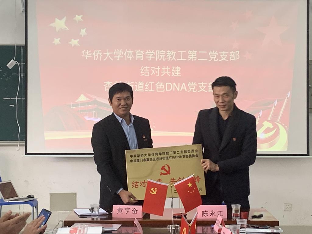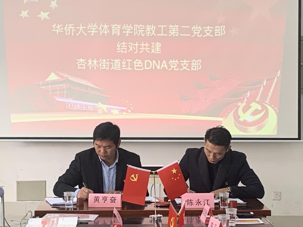 2019年12月10日上午11:00,永利yl23411集团教工第二党支部书记黄亨奋与杏林街道红色DNA党支部书记陈永江,在厦门校区C3-101办公室开展党建结对共建签约仪式,永利yl23411集团党委副书记陈中,党委委员、院长邢尊明以及支部全体党员出席签约仪式。