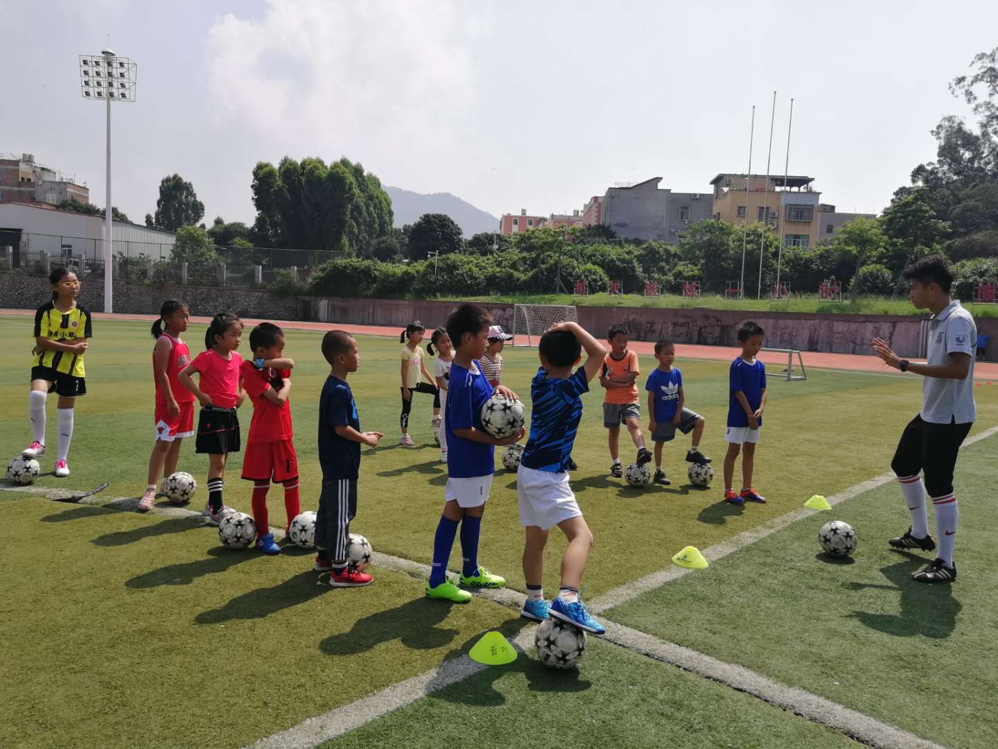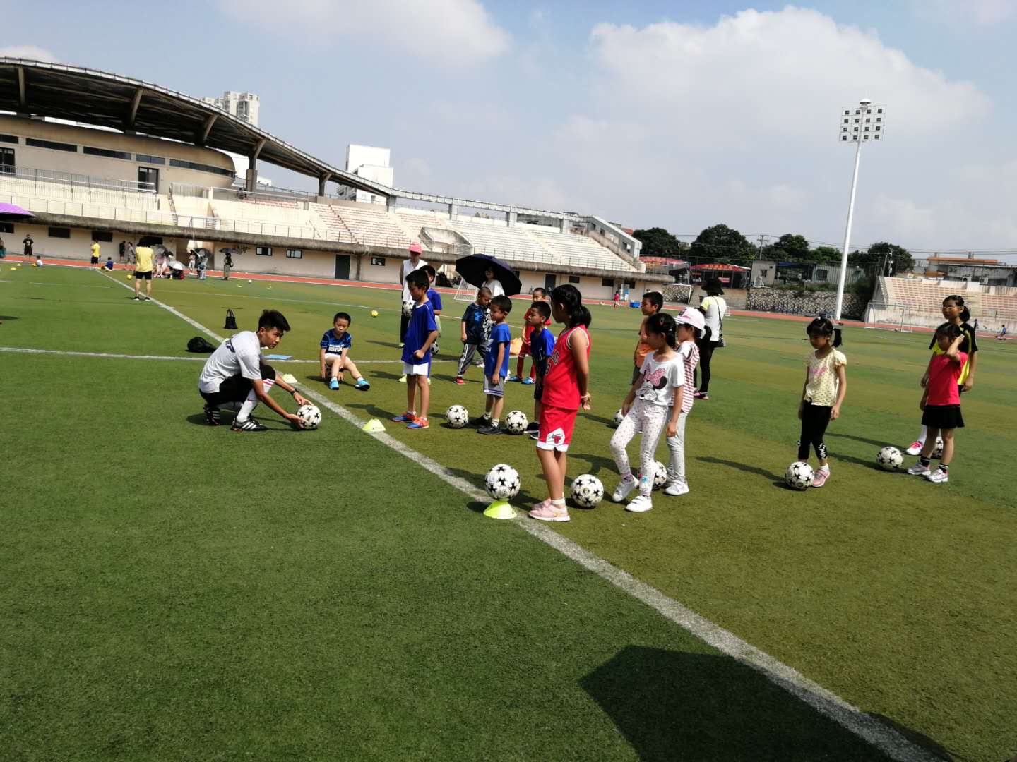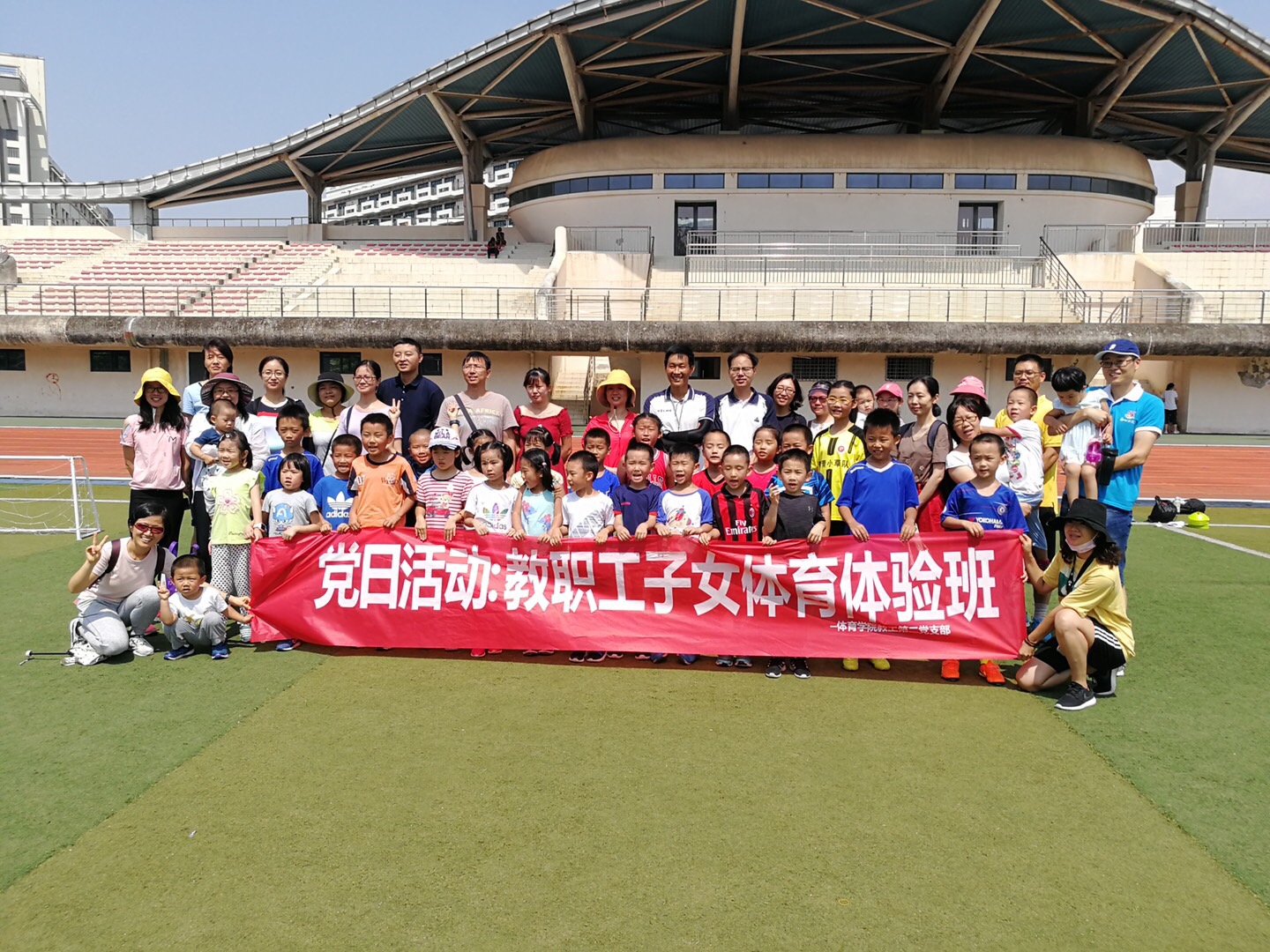 2019年6月15日上午9点,永利yl23411集团教工第二党支部主题党日活动+教职工子女体育兴趣体验班在厦门校区足球场举行,项目为足球,本次活动由yl23411集团足球队金牌教练李涛同志主讲,支部党员辅助,来自厦门校区的老师携同子女近60人参与体验课。