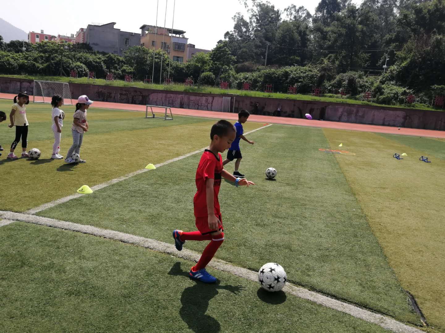 本次课程以简单、快乐为主题,以足球基本动作为主线,以游戏的方式进行教学,让学员充分活动起来,提升学员对足球的兴趣。首先是热身和游戏,接着技术学习,最后技术比赛,学员们整个学习氛围浓厚,参与积极性高,互动效果强烈,得到大家的一致认可、点赞。主题党日活动,是党建工作的重要内容,永利yl23411集团教工第二党支部组织我校教职工子女参加体育运动,可以充分发挥学院的师资力量,给教职工子女提供学习的机会,也能提高党员服务群众的意识。