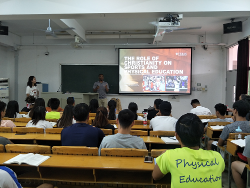 2018年5月29日上午,由邓小芬教授带领的德克萨斯大学奥斯分校代表团在祖航楼304为我院16级学生展开了学术交流活动。在本次交流会上,两位美国代表团的博士分别为我们分享了体育与宗教、体育与性别的研究成果。两位博士分别为我们讲述了关于各自研究方向的美国有关的体育背景、先下存在的问题以及我们该如何去解决它,并与我院16级的学生进行了深入地探讨。在近两小时的会议过程中,同学们各抒己见、畅所欲言,分别对自己所持有的观点进行了讨论与交流。通过此次会议,同学们对体育与宗教、体育与性别之间的关系有了更深一步的了解与认识。这次会议对16级同学来说是一次难得的与外国学者面对面交流的机会,更重要的是此次会议令大家受益匪浅。
