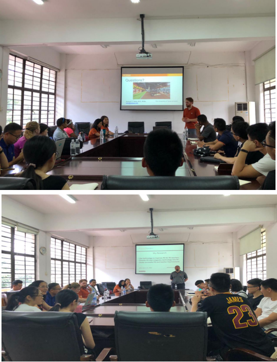 于2018年5月28日,由邓小芬教授带领德克萨斯大学使团对我院进行了访问交流,在体院三楼会议室和我院研一的学生进行面对面的学术交流,本次会议由王永顺副教授主持。