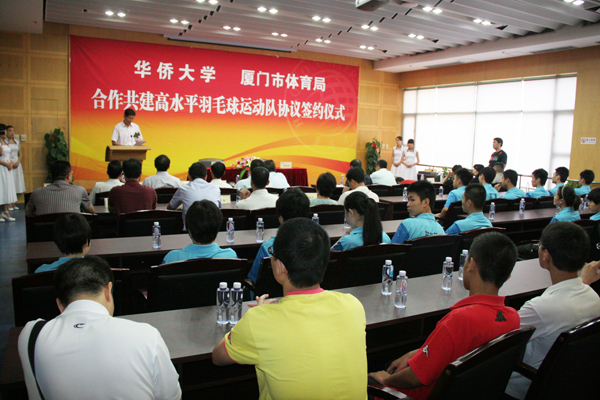 签约仪式前,双方还进行了座谈交流。双方均表示,希望通过双方合作,实现“强强联手”,借助厦门市得天独厚的经济、地理优势,挖掘厦门市羽毛球队运动员的运动实力,加强优势互补,探索出一条体教结合共建高水平运动队的新路。