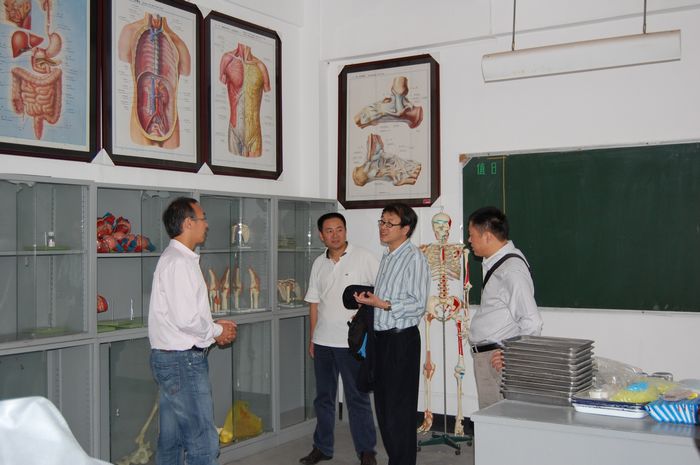 在我院副院长陈壮荔副教授的陪同下,李世昌教授一行参观了我院运动人体科学实验中心,并与我院理论教研室全体老师进行了深入的交流,还饶有兴趣的体验了运动生理实验室B超测试仪,并指导实验员如何使用B超测试仪测试腹部皮下脂肪厚度;在随后的座谈会上,李世昌教授还就《运动解剖学》教学和教材建设分享了自己多年的从教心得。座谈会上,陈壮荔副院长代表我院向客人介绍了我院运动人体科学实验中心的发展历程、办学规模、办学宗旨等,并希望双方今后继续加强合作与交流,深化友谊,共同推动体育专业教育事业的发展。
