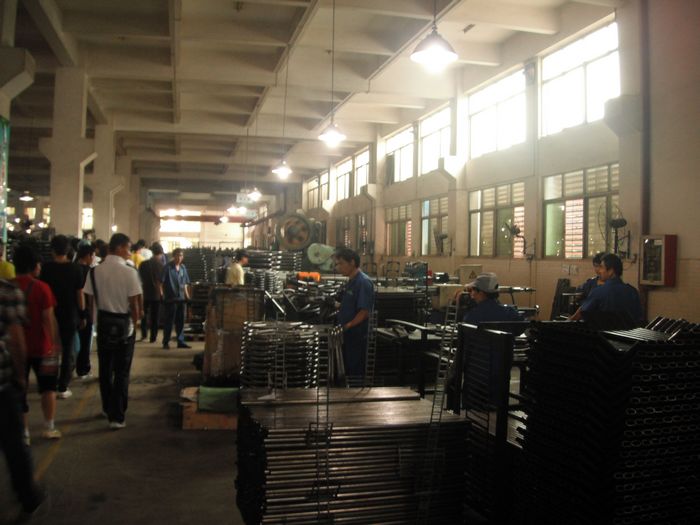 在华大校友、舒华集团市场部张云良副经理的带领下,大家分别参观了舒华专卖店、生产流水线、总装车间、仓储车间、产品陈列区等。同学们对操作规范、严谨工作的技术工人感到敬佩,惊叹原来一件看似简单的器械要经过这么复杂的工艺才能完成!在参观过程中,张副经理向大家详细地介绍一件健身器材从原材料到成品所要经过的全部过程。