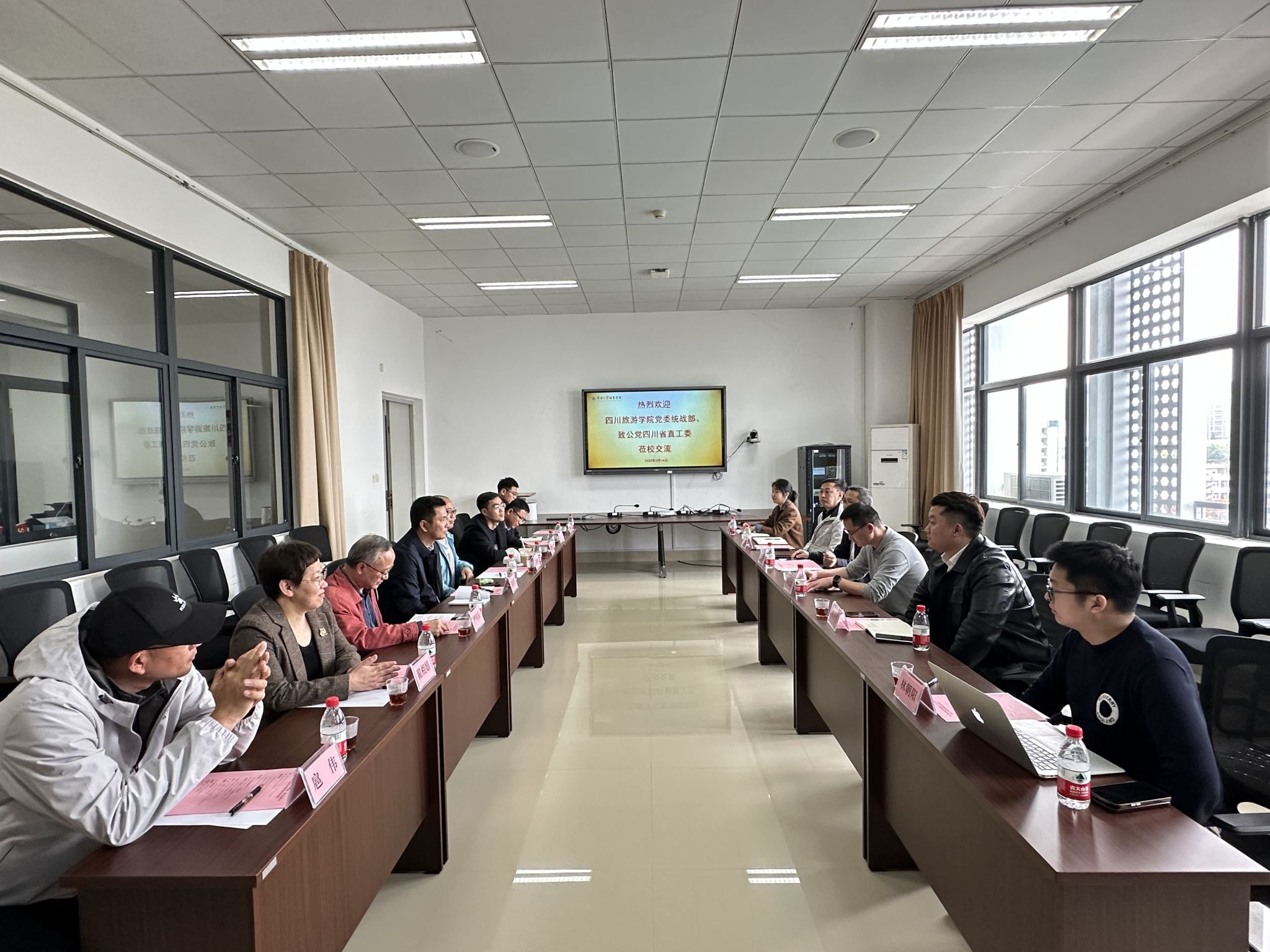 3月14日,四川旅游学院党委统战部、致公党四川省直工委一行来我校调研交流,校党委常委、统战部部长,永利yl23411集团领导、老师,致公党yl23411集团总支主委热情接待来访嘉宾。座谈会在永利yl23411集团505会议室召开,会议由永利yl23411集团党委副书记主持。