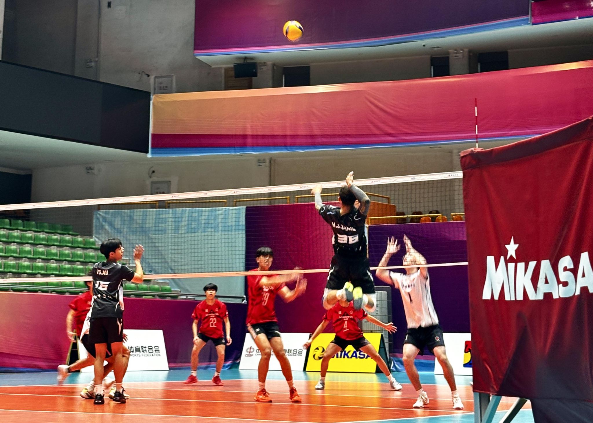 随后的比赛中,双方队员精神饱满,全力以赴。香港创知中学队凭借默契的团队配合与流畅的攻防串联,展现了良好的战术素养。华大体院队则发挥出扎实的基本功与丰富的比赛经验,通过灵活的战术组织与有力的进攻予以回应。整场赛事对抗激烈、节奏明快,精彩回合不断,充分体现了排球运动的魅力与两地青年的体育热情。