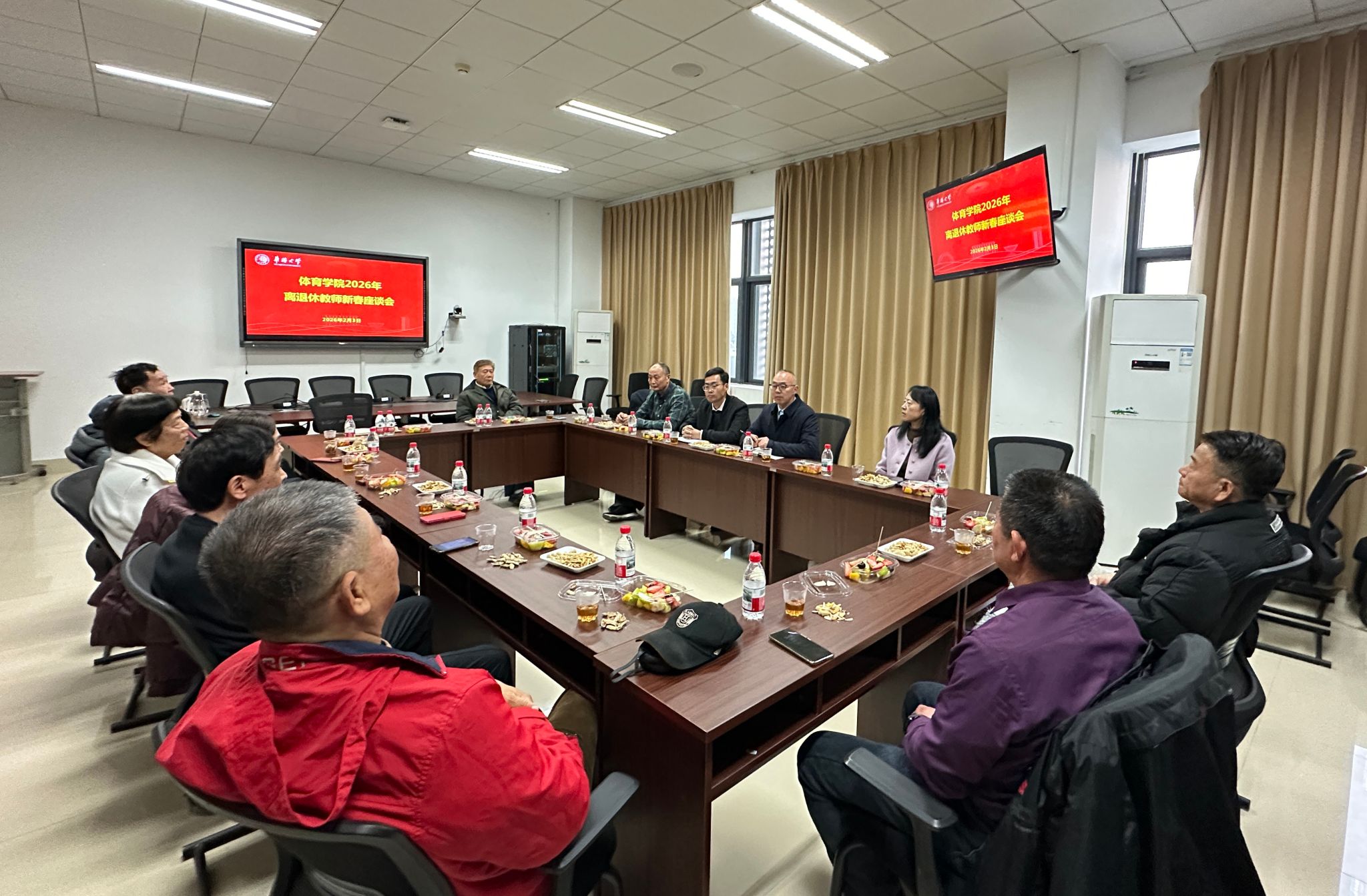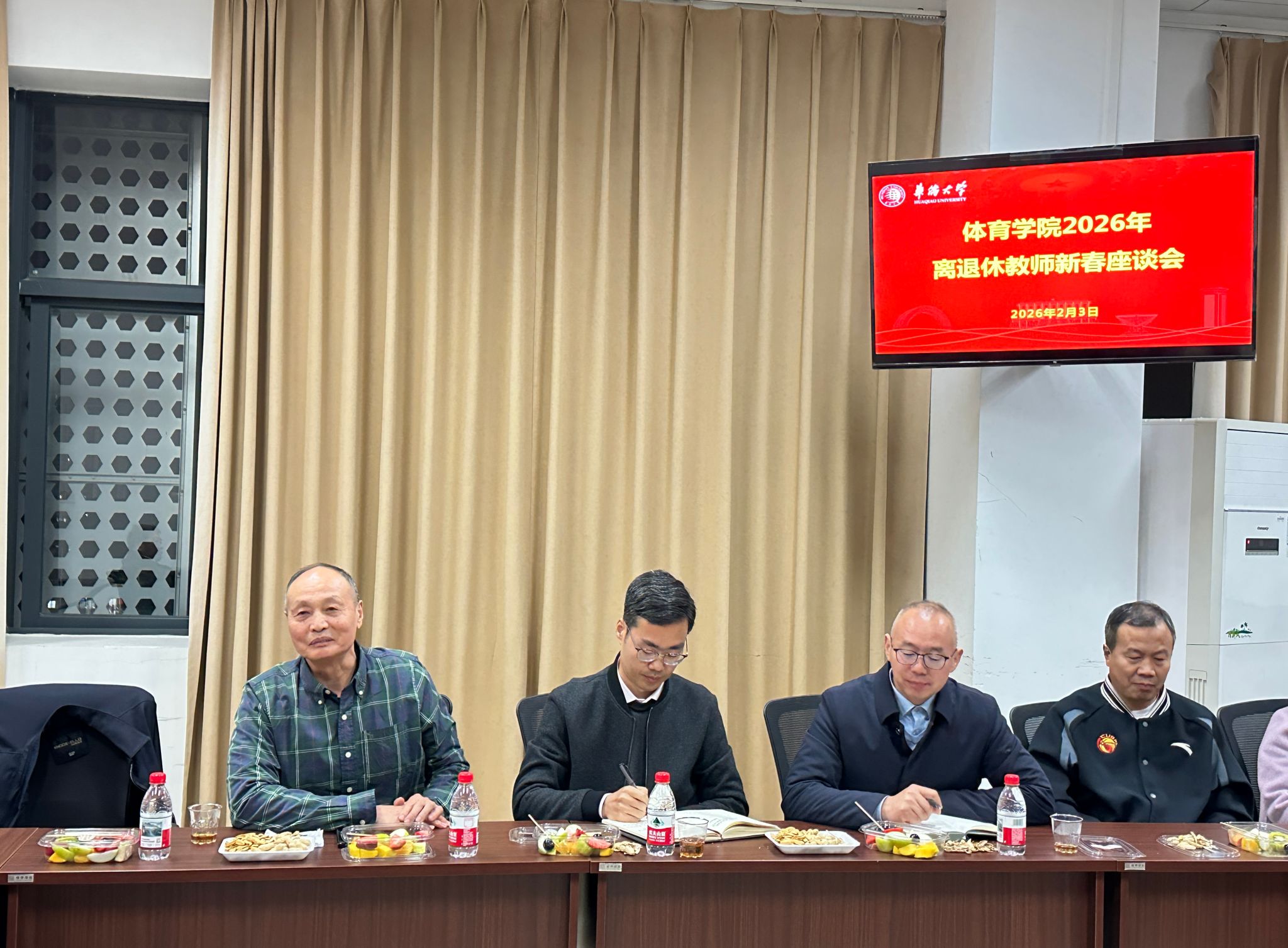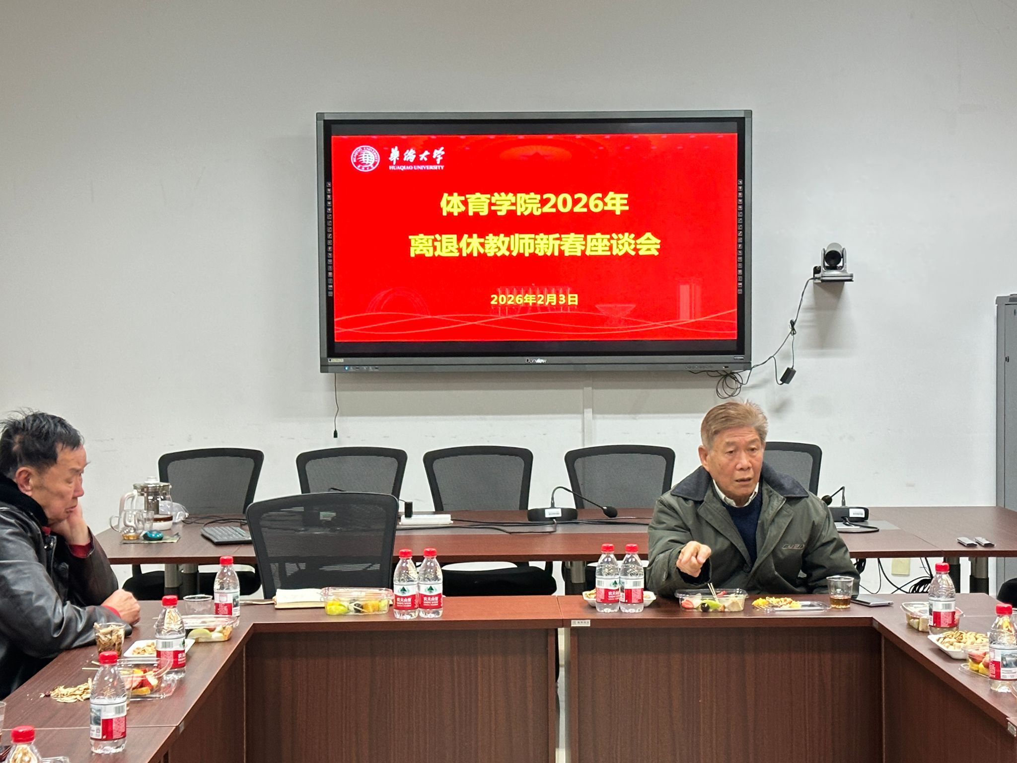 胡国鹏院长代表学院领导班子向老教师致以新春问候,对大家为学院打下的坚实基础及对学院发展的关心支持表示感谢。胡院长从师资队伍建设、本硕专业建设、招生工作、科研项目、竞赛训练、公共课安排及篮球、足球、羽毛球、田径、游泳、网球等项目发展建设回顾了学院“十四五”期间取得的良好成绩。同时,他分析了我院当前发展面临的挑战与机遇,结合“侨”字特色人才培养与课程设置、学科布局与未来博士点申报、国际化发展及以“篮球”为龙头的竞技品牌建设、中华传统体育文化传播与华文教育等内容汇报了学院“十五五”规划的初步设想,并听取老同志们对学院的发展建议。